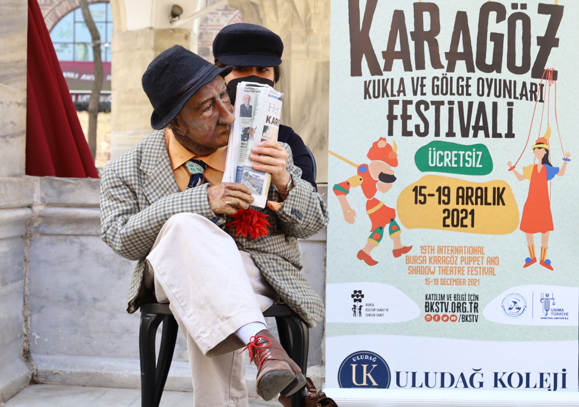 Kukla sanatçısı Cansu Akdeniz, ‘babasından ilham alarak’ yaşam verdiği Kadıköylü Muhsin Bey performansı ile metroda, çarşıda, tarihi hanlarda Bursalıları festivale davet ediyor. Akdeniz’in tarihi Koza Han’da sergilediği performans, Bursalılardan büyük ilgi gördü. Çaylarını içerken bir anda yanlarına gelen Muhsin Bey’i görünce şaşkınlık yaşayan Bursalılar, Cansu Akdeniz’in performansını beğeniyle izledi. 15-19 Aralık 2021 tarihleri arasında yapılacak festival kapsamındaki gösteriler; Tayyare Kültür Merkezi, Barış Manço Kültür Merkezi, Panorama 1326 Fetih Müzesi, Mete Cengiz Kültür Merkezi ve Karagöz Müzesi’nde sergilenecek.